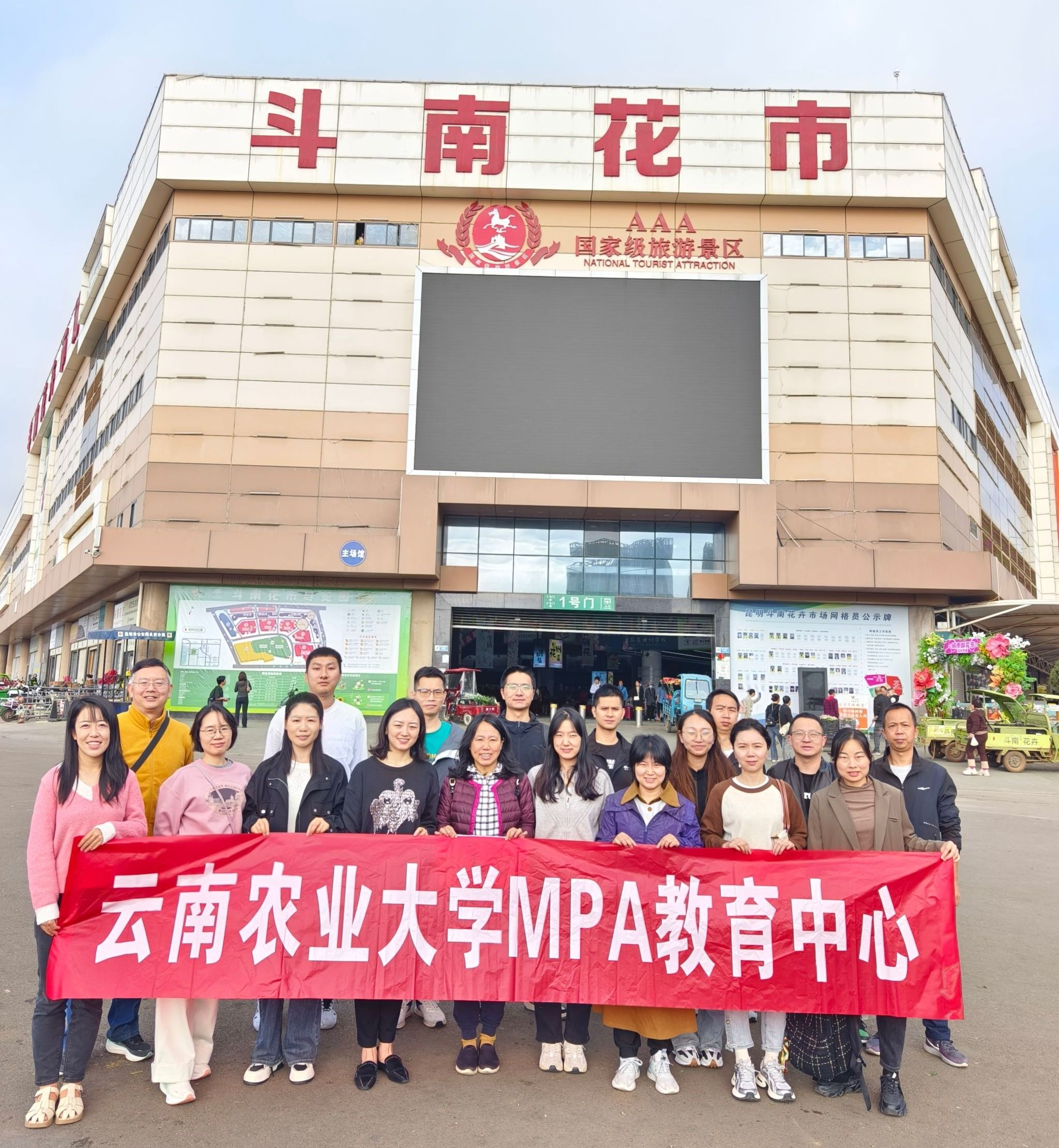 2024年10月3日,在李永前教授、金璟副教授的带领下,2023级全体MPA员工前往亚洲最大的鲜切花交易市场—斗南花市开展《农产品营销》课程实践活动,结合课程所学知识,调研昆明市鲜切花市场生产流通交易和创意农产品发展现状。