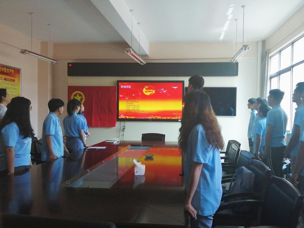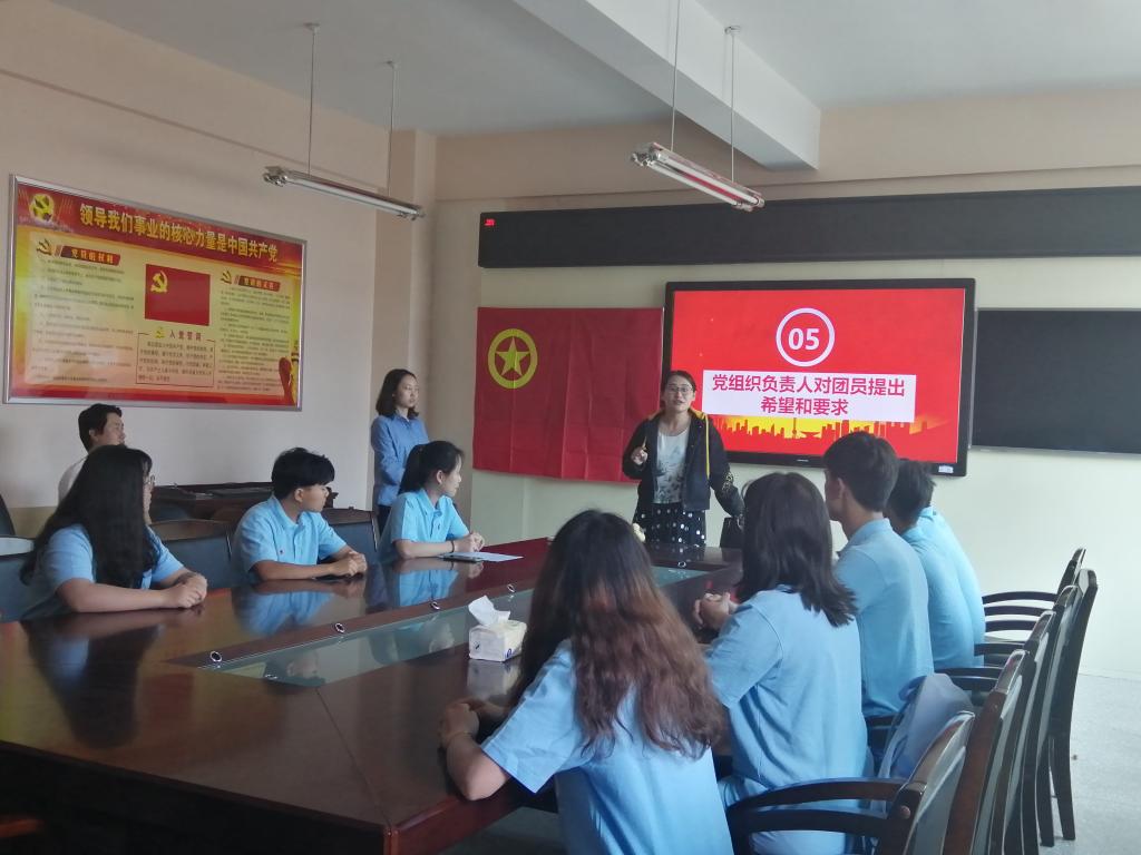为凝聚青年力量,共筑青春梦想,加强员工团员的思想道德建设,2021年4月29日下午14:30在明理楼3楼会议室召开重温入团仪式会议。此次会议由17级陈柳同学主持,团委书记杨阳老师和党组织代表金磊老师出席了本次活动,18级优秀团员员工代表参加。