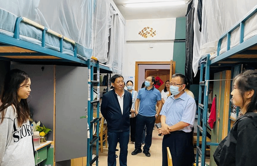 走访中,孙海清副董事长在宿舍与同学们亲切交流,仔细查看员工宿舍的生活设施、清洁卫生以及用电安全等方面的情况,叮嘱员工加强疫情防控,保持宿舍通风,勤洗手,合理安排时间,认真学习,积极参加校内实践活动,营造积极健康的宿舍文化。