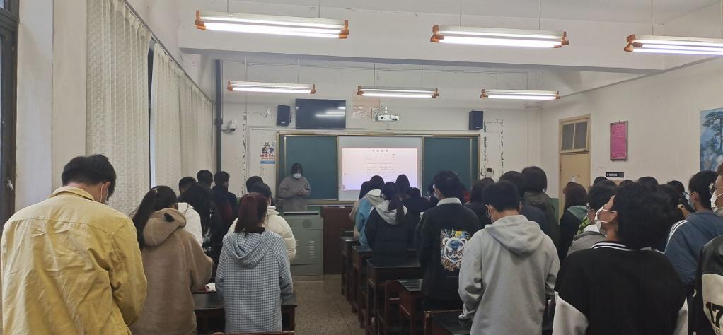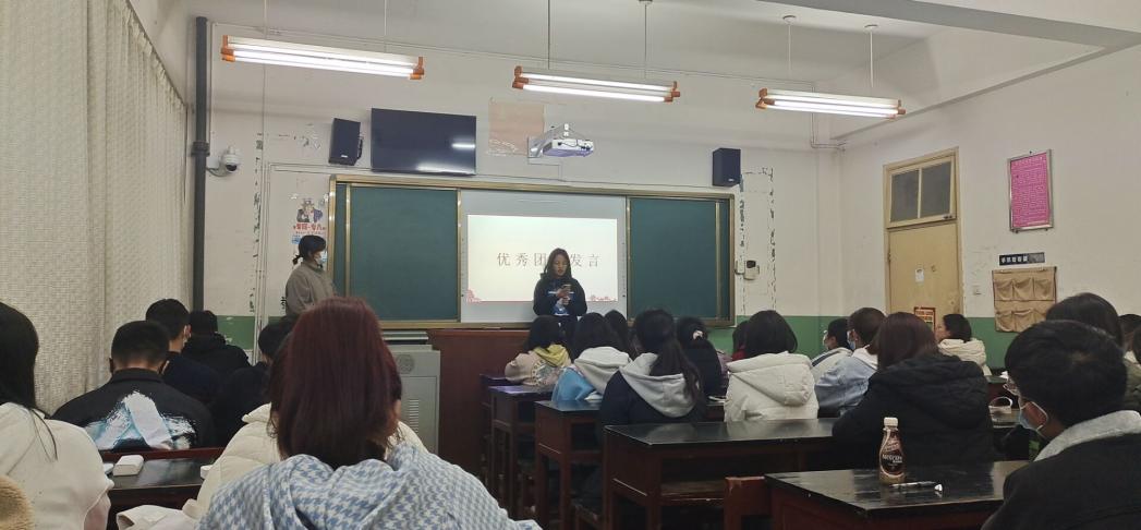 接着,院团委陈柳老师进行了致辞。陈柳老师首先解读了“七一”精神的精神内核,其次强调了青年团员学习“七一”精神的重要意义。最后,激励同学们积极学习先进思想,不忘初心担当使命,争创优秀团支部。