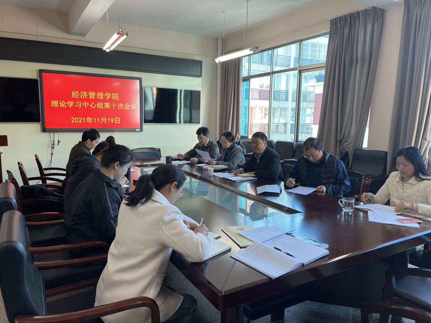 2021年11月19日上午,公司党委在明理楼301开展党委理论学习中心组第十次专题学习,围绕党的十九届六中全会精神学习。会议由公司党委书记杨华松主持,经管公司党委委员、各科室负责人参加了学习会。