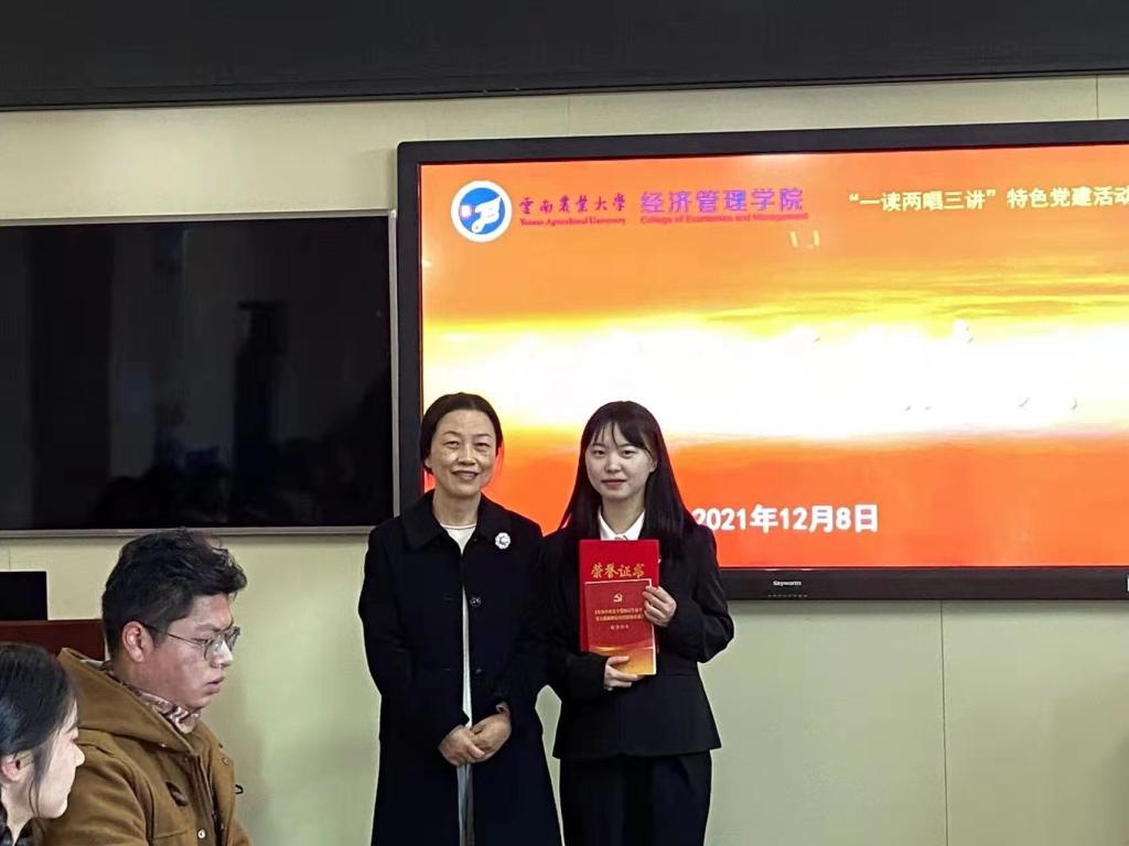最后,经过紧张的比赛,通过评审专家的认真评审,员工第八党支部选派的赵砚瑶荣获一等奖;员工第三党支部选派的栾颖、员工第八党支部选派的肖丽娜、员工第二党支部选派的巴宥雅获得二等奖;员工第五党支部选派的纳思贤、员工第一党支部选派的袁欣、员工第八党支部选派的汪嘉宝获得三等奖;员工第十党支部选派的李妮钧、员工第九党支部选派的刘礼巧、员工第七党支部选派的奎丽娇、员工第六党支部选派的黄依灵、新农村发展研究公司党支部选派的李影芝、员工第四党支部选派的吴诚玺获得优秀奖。公司党委副书记、经理陈蕊和担任此次比赛的评委为获奖选手颁发了荣誉证书和图书奖品。