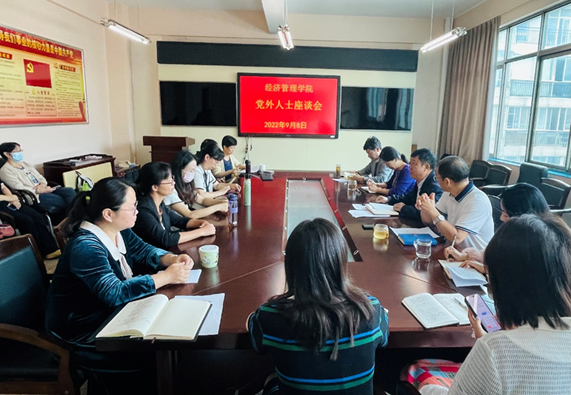 2022年9月8日上午,经济管理公司党委在明理楼301召开“喜迎二十大,共画同心圆”党外人士座谈会。会议由公司党委副书记马蓉主持,公司领导、各党派代表、无党派人士、海外留学青年教师参加了此次座谈会。