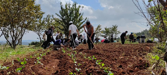 下午两点,德馨联盟创始人、德馨实验公司董事长李志祥老师为同学们讲解菜苗种植的动作要领、技巧和注意事项。同学们进行分组后撸起袖子,拿起锄头、带起草帽开始进行整地、菜苗种植。经过同学们两个小时的奋战,完成了菜苗种植任务。