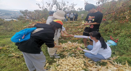 在完成菜苗种植的任务后同学们转战到玉米地对玉米进行收割,在收割中同学们体验到了劳作的快乐也体会到了劳作的不易。之后还参观了饲养场。