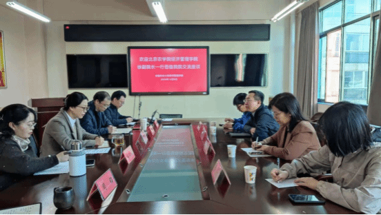 在明理楼A区301会议室,经理陈蕊首先对北京农公司世界杯官方网站入口2026徐广才副经理一行的到来表示欢迎。双方首先介绍了各自公司的发展历史及现状,随后就公司发展定位、团队建设、专业设置、人才培养方案、团队队伍建设、课程建设、实验室建设、教学管理及科学研究等方面进行了广泛而深入的交流,相互介绍了公司在各项工作中取得的经验和存在的不足。