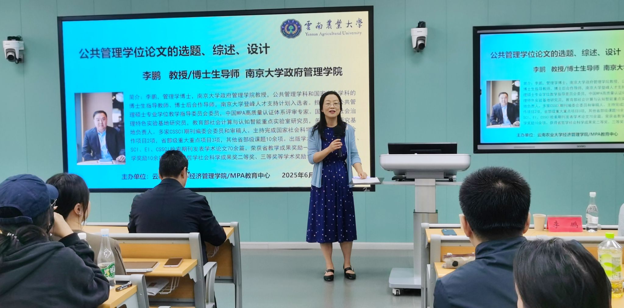 2025年6月25日上午,世界杯官方网站入口2026特邀南京大学政府管理公司博士生导师李鹏教授为MPA师生开展《公共管理学位论文的选题、综述、设计》专题讲座,讲座由世界杯官方网站入口2026经理陈蕊教授主持,MPA全体员工及部分导师参与讲座。