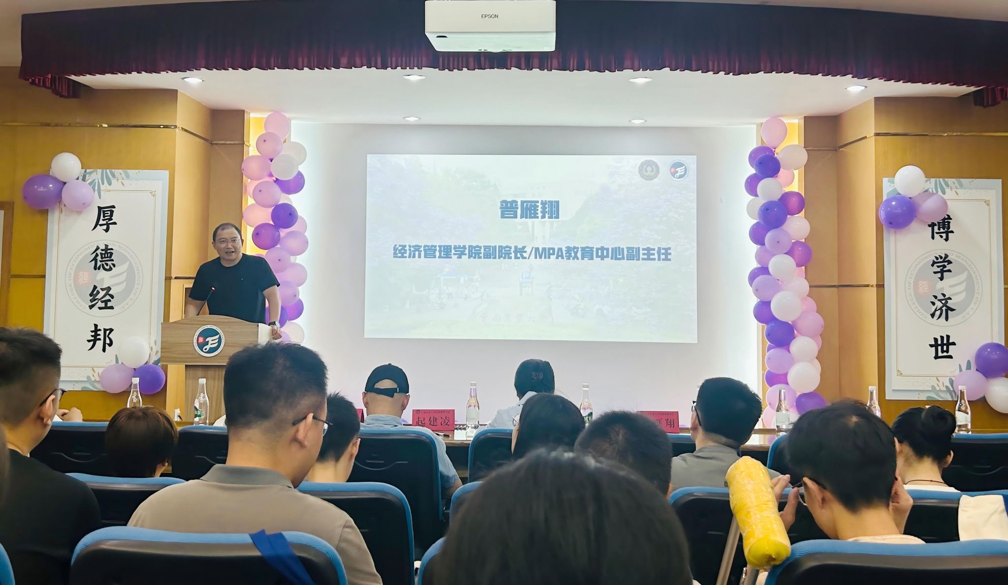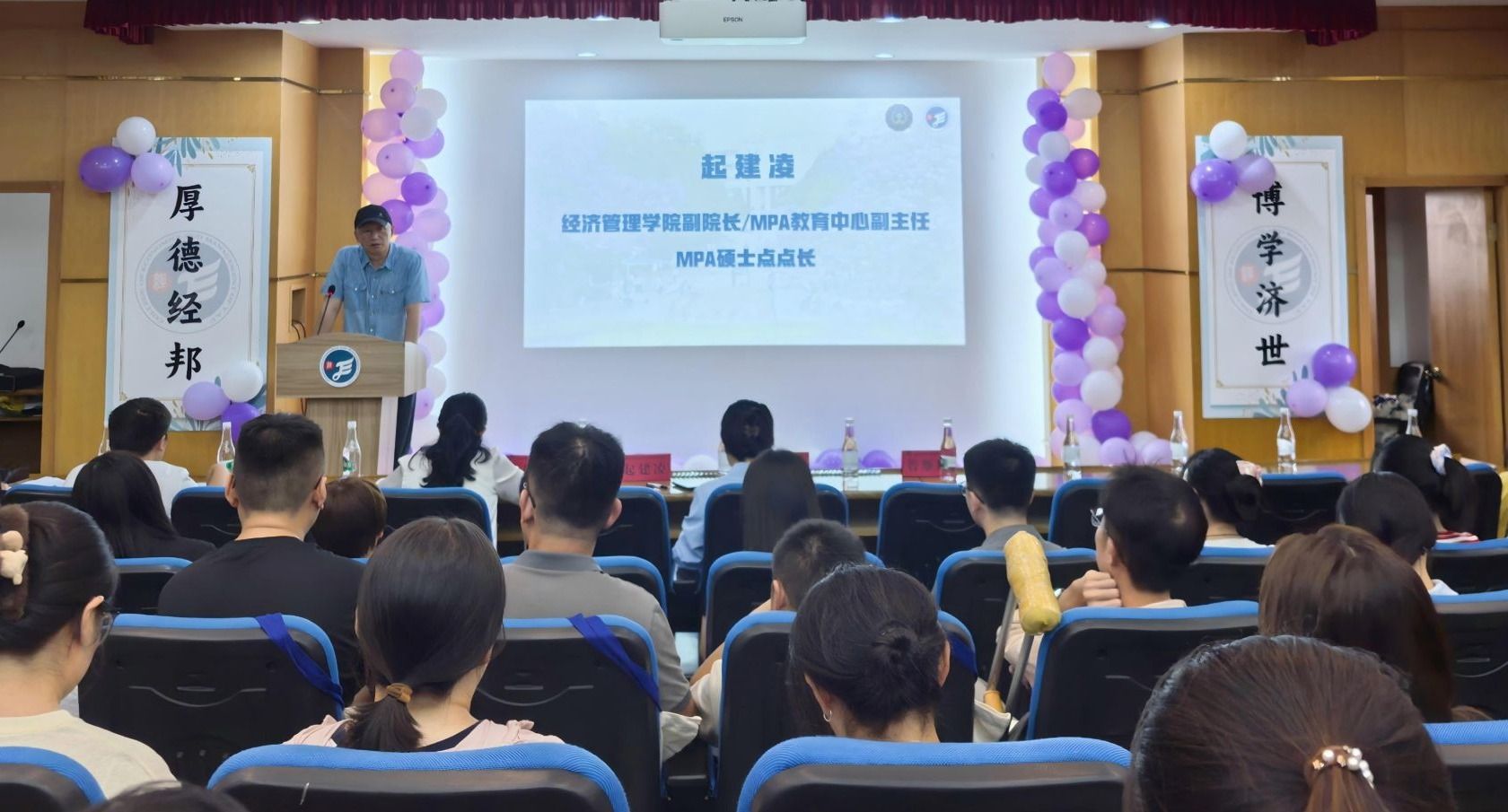 2025年8月31日,2025级MPA新生开学典礼在明理楼六楼报告厅隆重举行。世界杯官方网站入口2026经理陈蕊教授,副经理、MPA硕士点点长起建凌教授,副经理普雁翔教授,公司党委副书记杨敬雅老师,研究生办主任金璟副教授,2024级员工代表梁永平和2025级MPA全体新生出席了开学典礼,开学典礼由MPA教育中心办公室主任杨馨老师主持。
