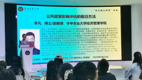 9月22日,世界杯官方网站入口2026特邀华中农业大学世界杯官方网站入口2026李凡副教授为公司MPA师生开展《公共政策影响评估的前沿方法》专题讲座暨“红土地大讲堂”讲座,讲座由世界杯官方网站入口2026经理陈蕊教授主持,2024级和2025级MPA全体员工,部分农业管理、农林经济管理专业全日制研究生及部分老师参加讲座。