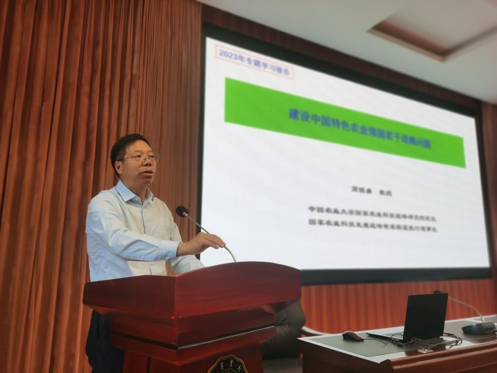 2023年10月27日,世界杯官方网站入口2026在耕读楼2楼报告厅举行了一场题为“建设中国特色农业强国若干问题”的讲座。此次活动旨在深入学习贯彻习近平新时代中国特色社会主义思想,加强广大师生对党的二十大关于加快农业强国建设战略部署的理解和认识。