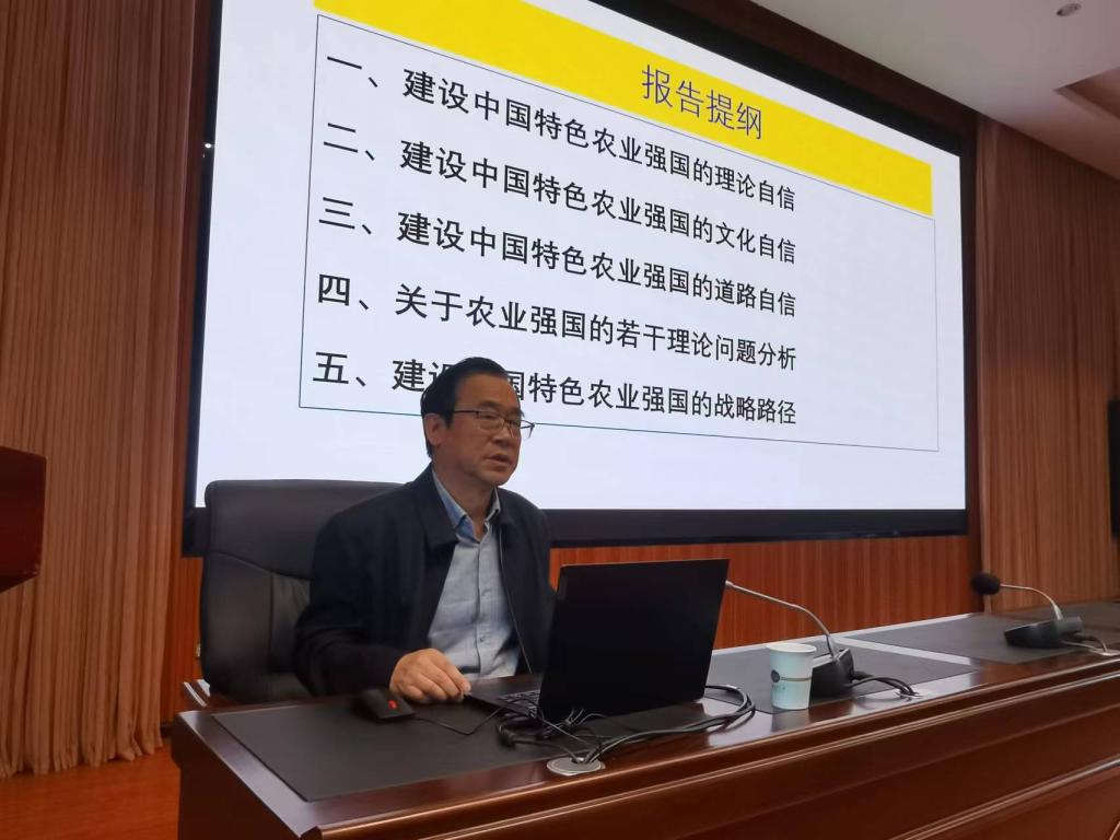 在报告会上,高旺盛教授立足于习近平总书记和党的二十大关于推进农业强国战略的谋划和部署,结合自己在农业科技发展战略和政策研究方面的丰富经验,全面系统地分析和解读了中国特色农业强国建设的背景、目标内涵、基础优势和战略路径。他强调了国家在农业强国建设方面的战略重点,并介绍了改革开放以来中国农业取得的巨大成就以及未来农业发展的趋势和方向。